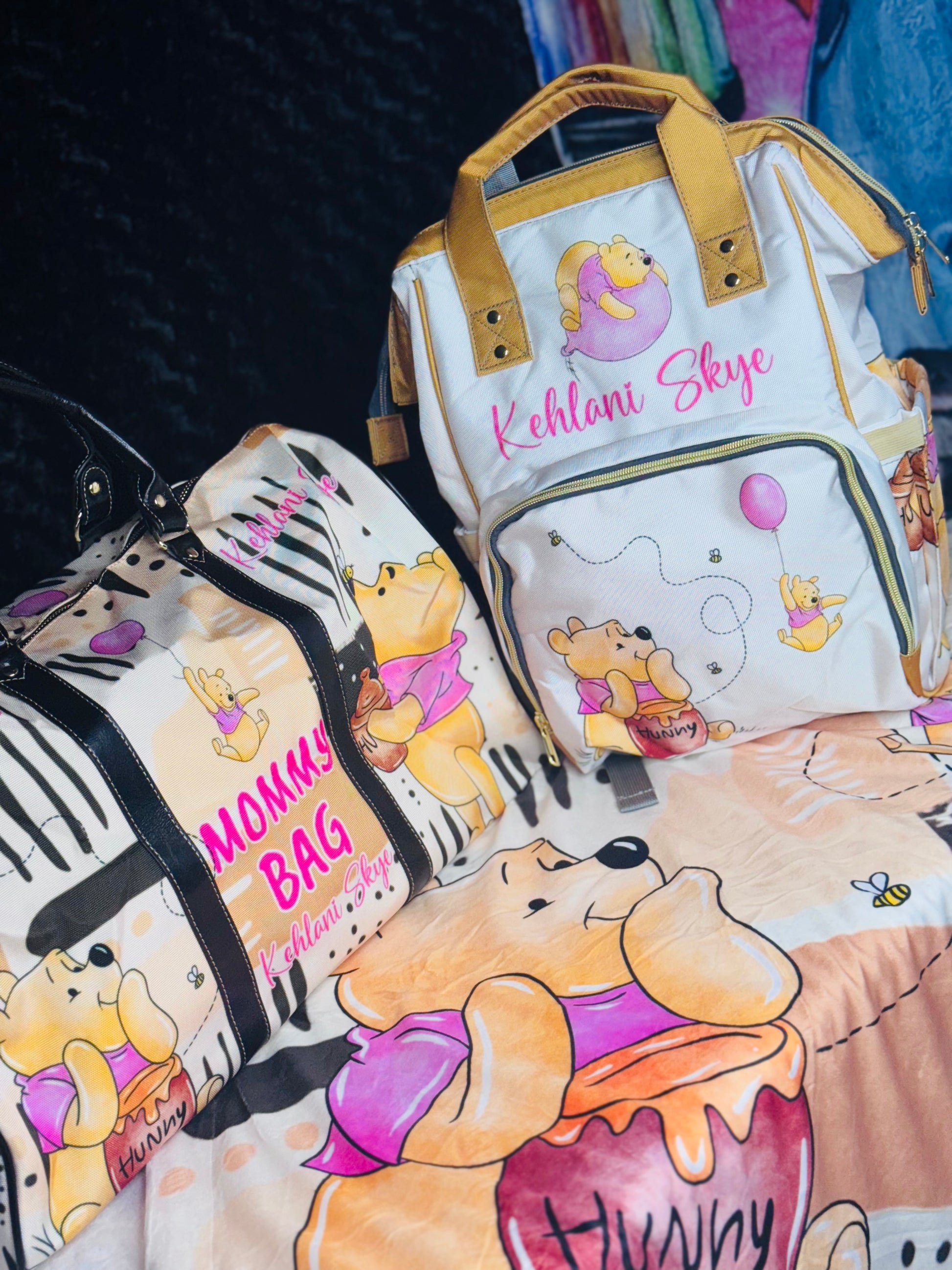 Winnie Diaper Bag, Mommy Bag and Minky Baby Blanket Bundle